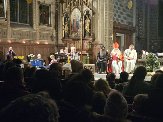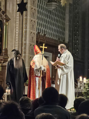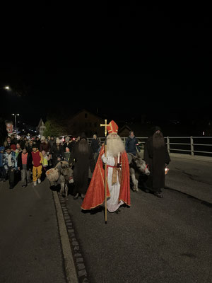 Viele nervöse Kinder begrüssten freudig den Chlaus, seine Schmutzlis und Eselis. Gemeinsam zog die Gesellschaft anschliessend zur Kirche hoch, wo eine Messe stattfand, die auf die kommende Adventszeit einstimmte.
